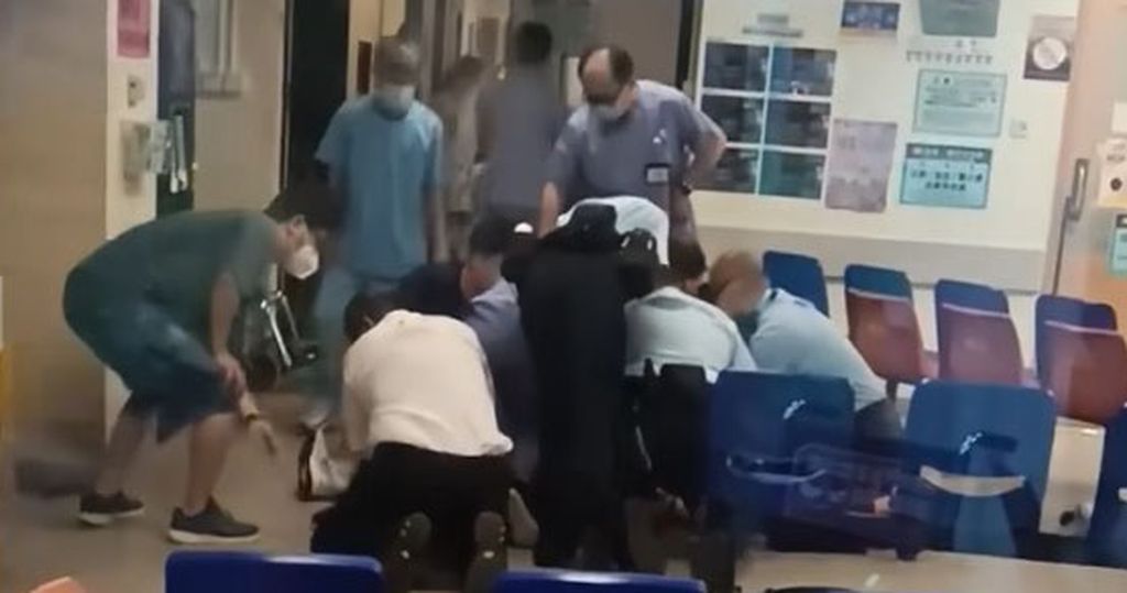 據網上片段,當時數名警員及約10名醫護人員,合力將一名男子按在地上,醫護人員將該男子抬上病床帶走。