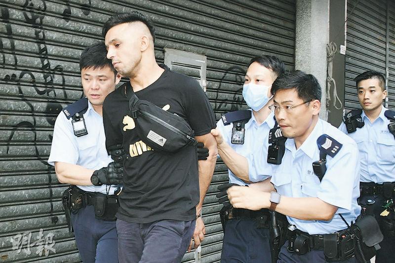 【明報專訊】昨清晨近6時,深水埗基隆街發生傷人及刑事毁壞案,29歲非華裔男子疑因感情糾紛,以用垃圾鏟及掃把襲擊前妻及一名本地男子。警方到場後以「傷人」及「刑事毁壞」拘捕非華裔男,他情緒激動,一度用腳抵住救護車門,拒絕上車,又以粗口喝罵記者,「你哋上網check(查)吖嘛,知道發生咩事,搞人哋BB搞人哋老婆呀!」最終由4名警員合力押上警車。