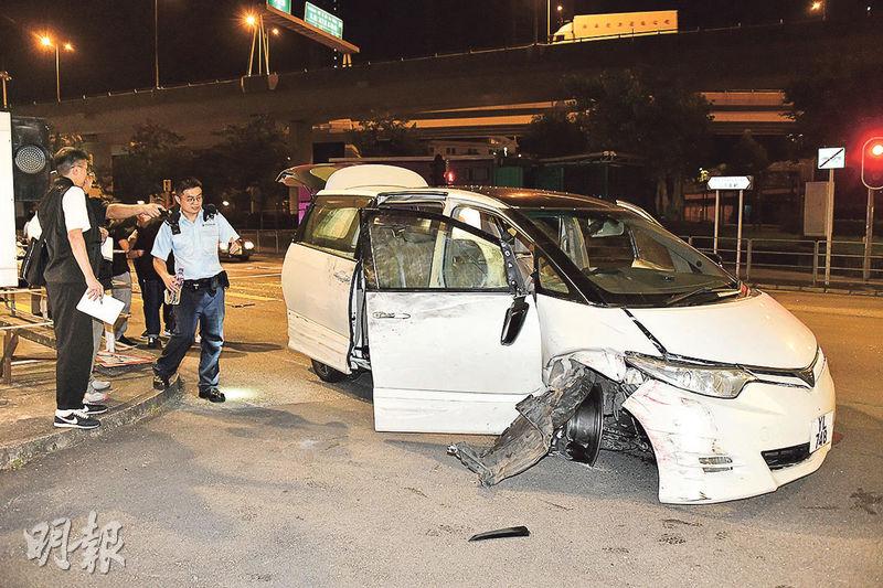【明報專訊】一輛七人車前晚(29日)在沙田逃避警方截查,先後撞開在燈位前等候的5輛車,但因車輪甩脫無法繼續開行,涉事司機棄車逃去,警員一度擎槍戒備,被撞毁的5輛車其中兩名女司機受輕傷送院治理。警方在車內檢獲小量可卡因,將案列作狂亂駕駛及藏毒,由沙田警區重案組接手調查,正追緝在逃年約20至30歲男司機。