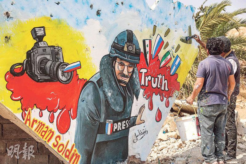 國際 敘藝術家殘垣作畫 致敬烏戰殉職記者 發佈於 3 年 前 2023 年 5 月 25 日 By 明報 【明報專訊】法新社攝記索爾丁(Arman Soldin)本月9日在烏克蘭東部俄烏雙方正爆發激戰的巴赫穆特附近遭遇炮擊殉職。敘利亞有藝術家周二在敘國反抗軍控制的西北部伊德利卜省城市巴納什(Binnish)一座倒塌建築物餘下的最後一面牆上,繪畫索爾丁的肖像壁畫向其致敬。 相關文章: Up Next 掩口費案明年3月審 特朗普批干預選舉 不要錯過 烏國防高層稱快將反攻 成敗看軍援 繼續閱讀 贊助商 猜你喜歡