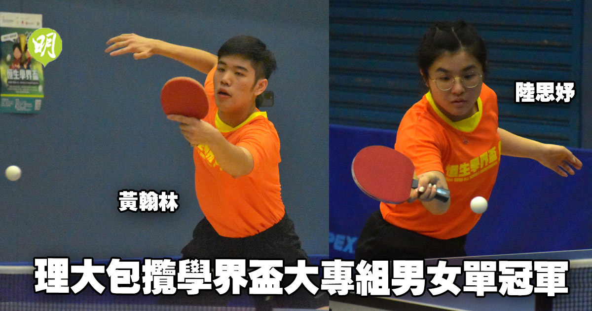 乒乓恆生學界盃決賽今午(22日)假荃灣西約體育館舉行,香港理工大學的黃翰林和陸思妤包攬大專組男、女單冠軍;而香港浸會大學附屬學校王錦輝中小學的蔡楠在中學組男單決賽險勝李翰文封王,賽後更喜極而泣。
