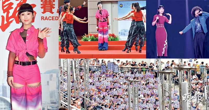 【明報專訊】炎明熹(Gigi)人氣有增無減,不久前才踏入18歲,昨日人生首次進入沙田馬場,為「香港共慶回歸賽馬日」擔任表演嘉賓,Gigi於馬匹亮相圈連唱3首個人作品,包括新歌《Little Magic》,又跟舞蹈員載歌載舞,表現淡定顯大將之風,現場約有200名Gigi的粉絲為偶像舉牌吶喊打氣。之後《中年好聲音》三甲周吉佩、李佳及羅啟豪輪流在公眾席獻唱,氣氛熱鬧。