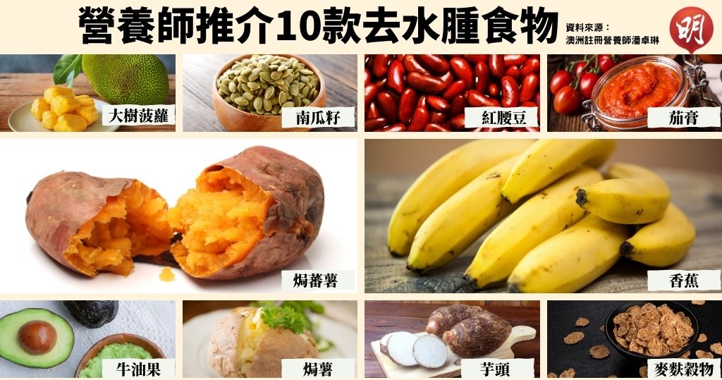 天氣悶熱影響食慾,不少人會選擇一些「重口味」的高鈉食物,若沒有同時增加水分攝取,身體的水分未能排出,便會出現「水腫」。澳洲註冊營養師潘卓琳(啊家)表示,有時候吃了「好鹹」的一餐,翌日起牀發現自己「口腫面腫」,可選擇以下10款高鉀的「水腫急救」食物,幫助人體排走多餘的鈉質,調節身體內的水分平衡。