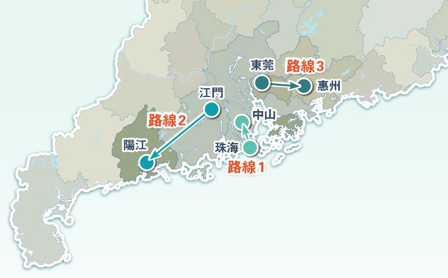 從珠海經中山往東莞及惠州進發,路線靈活,隨時可改往佛山、廣州,調整行程。