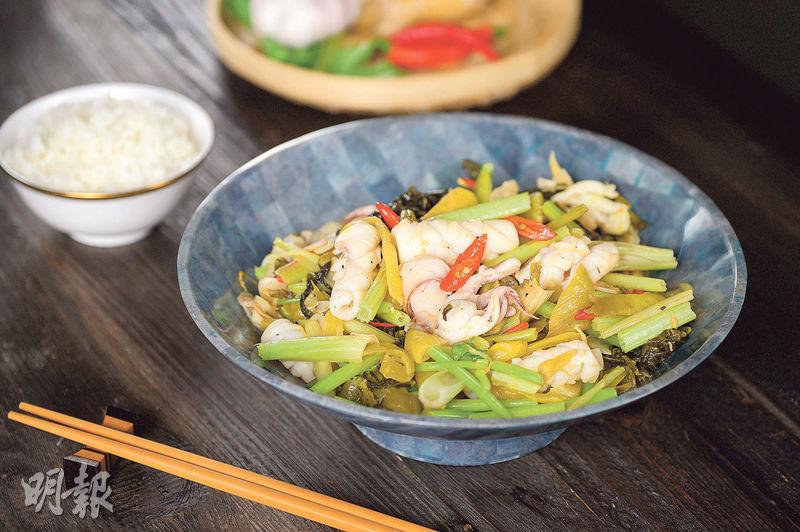 【明報專訊】夏天是夜釣魷魚和墨魚的季節,這讓我想起一道十分適合伴飯的家常菜——鹹酸菜炒鮮魷!這道菜結合了爸爸喜愛的魷魚,以及媽媽愛吃的鹹酸菜,是我們全家的心頭好,每次烹調時我都特別有動力。整體做法簡單,屬於新手入門菜式,唯一注意的是,一定要使用新鮮魷魚,這樣吃起來才會彈牙又爽口!
