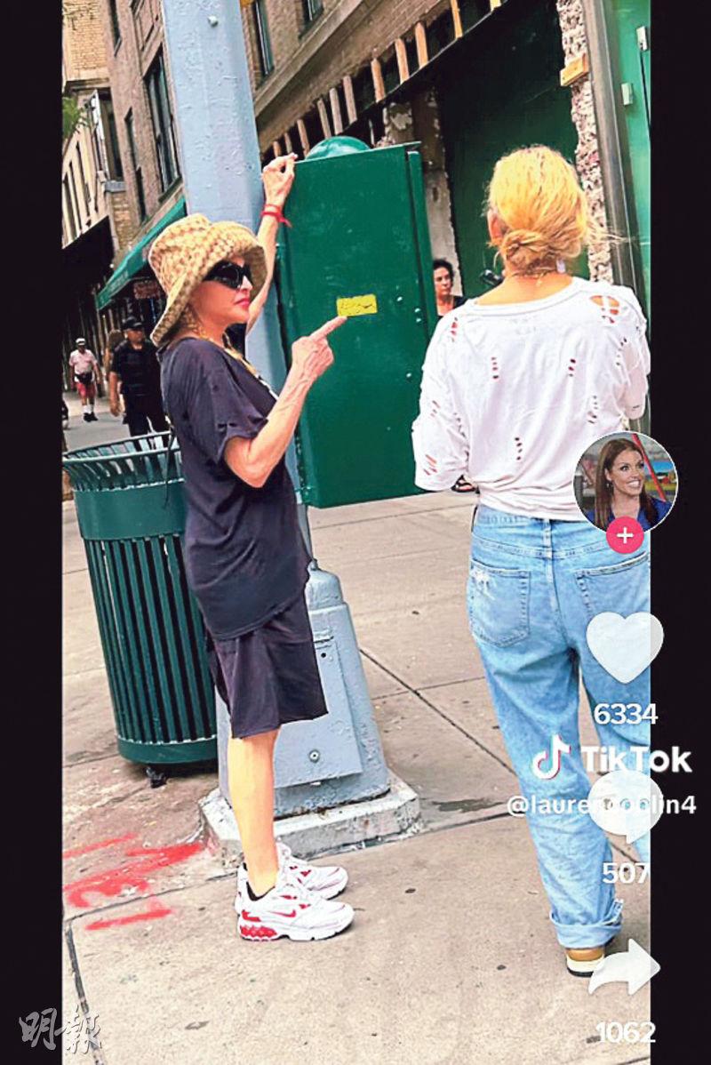 【明報專訊】原定本月中舉行歐美巡迴演唱會的64歲樂壇天后麥當娜(Madonna),上月因嚴重細菌感染,一度昏迷送院,在深切治療部(ICU)留醫數天後,回家休養又傳腦死,雖然證實虛驚一場,但仍叫粉絲擔心不已。前日有網民透過社交媒體TikTok上載短片,宣稱上周末在紐約街頭偶遇娜姐,穿著一身黑色便服的她在友人陪同下逛街,二人有說有笑,精神看來不俗,粉絲終可放下心頭大石。