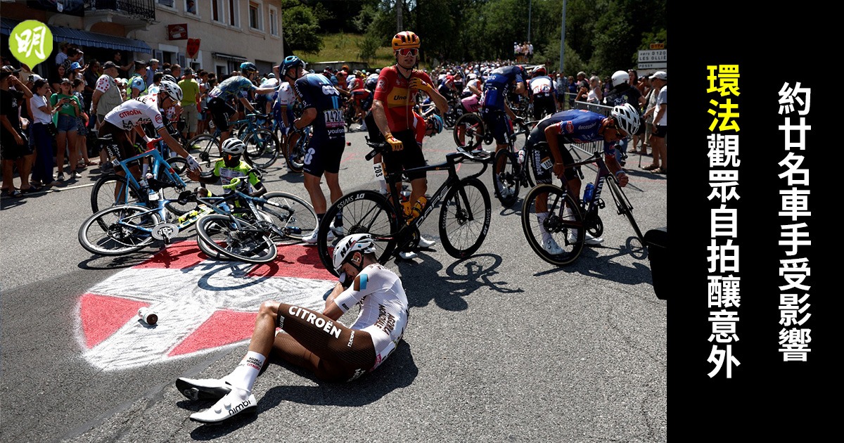環法單車賽昨日(17日)在法國萊熱起步的第15站賽事,因有觀眾太近賽道自拍而釀成意外,導致約20名車手「炒車」,幸未造成車手退賽。賽會事後在社交網再次呼籲觀眾要注意車手安全。