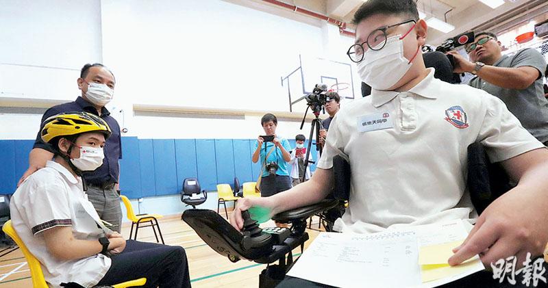 【明報專訊】家人說他人如其名般「樂天」,楊樂天回望初小漸漸步履蹣跚,至9歲確診杜興氏肌肉營養不良症。10多年來,他的肌肉不斷退化,長期以輪椅代步,只有頭部及手指可活動,但21歲的他走過低潮,仍是樂天,「心態好重要,如果覺得灰,做咩都唔會成功」。樂天寫字時,以食指及拇指夾着筆發力,較別人花更多時間和力氣書寫,在「加時75%」的安排下,他靠一己之力完成中學文憑試(DSE)所有筆試,昨日放榜,樂天考獲最佳5科18分,希望入讀城大市場學。