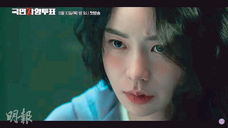 【明報專訊】前晚舉行第2屆青龍電視節目頒獎禮上,林智妍憑韓劇《黑暗榮耀》大熱贏得最佳女配角獎,而她主演SBS電視台新劇《全國死刑公投》,將於下月10日首播,昨日公開首支預告片,講述一群神秘人發起公投,決定那些利用法律漏洞而逃過審判的罪犯,應否接受死刑的故事。林智妍伙拍《來自星星的你》朴海鎮及《北寒諜戰》朴誠雄合演。在長約30秒的預告片段中,疑犯獲法庭判無罪,巿民拿起手機投票,扮演網絡調查組警員的林智妍,一臉嚴肅地問「到底是誰」?另一方面,影視串流平台Netflix韓劇《假面女郎》亦定於下月18日上架,由《名流真相》高賢貞及《出師表》Nana主演,預告片昨日曝光,講述一名性格自卑的女生,每晚戴着面具進行直播,其後捲入命案的離奇故事。