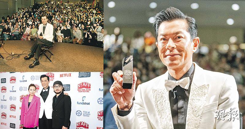 【明報專訊】古天樂獲紐約亞洲電影節頒發最高榮譽「亞洲影壇非凡貢獻大獎」,表揚多年來為亞洲影壇作出貢獻。他日前親赴紐約領獎,並出席主演電影《送院途中》首映禮。他感謝大會的肯定,指香港電影人在疫情期間沒改變本質,依然用心製作電影,所以不是他個人榮耀。他稱有留意荷李活近日發生美國編劇和演員工會罷工行動,指AI(人工智能)提供到人類方便和功能,但永遠戰勝不到人類的創造力和情感,承諾未來繼續努力用心製作。