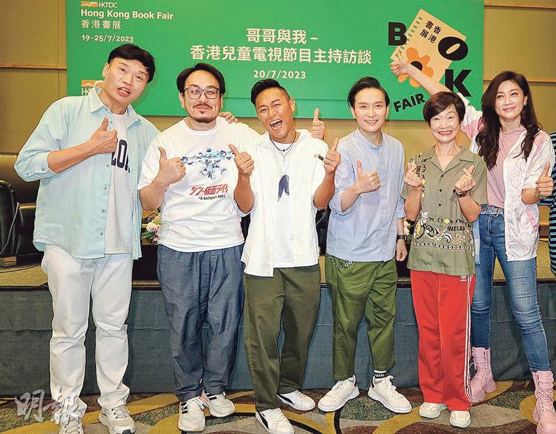 【明報專訊】譚玉瑛、伍文生、秦啟維、Harry哥哥(王者匡)、蕭徽勇及袁潔儀等先後在不同年代擔任兒童節目主持,前晚出席涂小蝶著作《哥哥–香港電視兒童節目男主持訪談》講座,憶述當年拍節目經歷,勾起集體回憶。新書由譚玉瑛寫序,也有幫手聯絡部分受訪者;袁潔儀專程從廣州返港,為昔日亞視兒童節目《機靈加油站》拍檔秦啟維撐場。