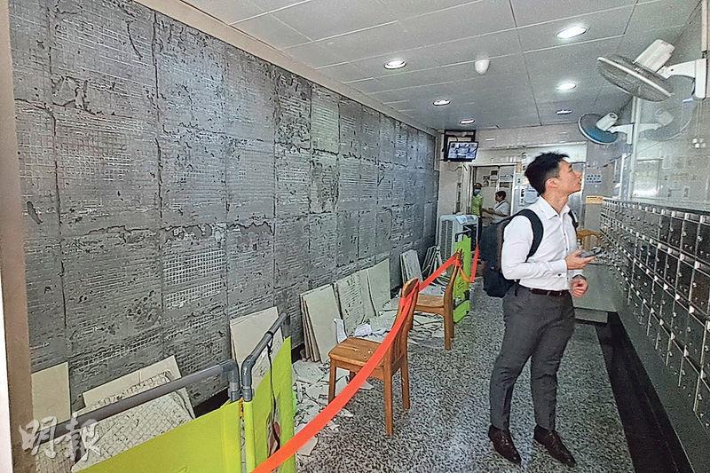 同區大廈大堂塌8×2.5米牆磚 屋署:不涉樓宇結構