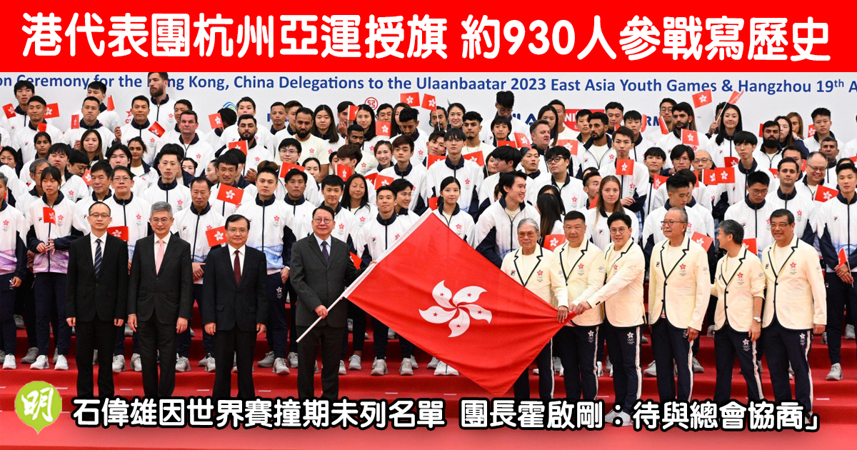 杭州亞運︱香港代表團授旗 逾900人參戰寫歷史 石偉雄因世界賽撞期待「與總會協商」 (20:42)