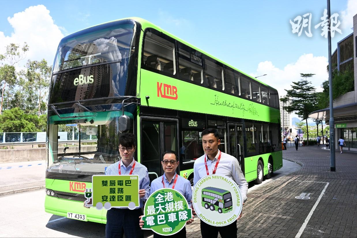 九巴車務總監關智偉表示,為配合政府碳中和目標,九巴將安排首批電動雙層巴士投入213M路線服務,循環來往安泰及藍田站。雙層電動巴士以「電光綠」作為車身主色,總載客量115人,充電約2小時後續航力為300公里,料可應付九巴近8成巴士全日運作需要。