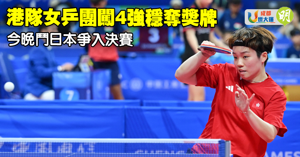 成都世大運︱港隊女乒團體賽闖4強穩奪獎牌 今晚鬥日本爭入決賽 (16:55)