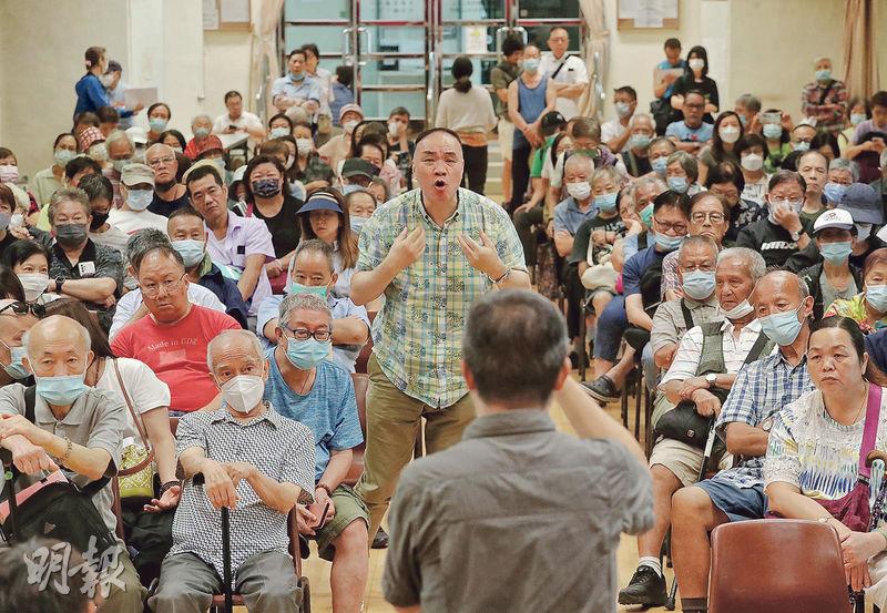 【明報專訊】推動石硤尾大坑西邨重建的平民屋宇有限公司(下稱「平民屋宇」)6月公布安置方案,今天(2日)為居民回覆是否接受遷置安排的最後限期。關注團體昨日召開記者會,譴責平民屋宇將「住戶資料聲明書」視為接受回遷安置方案,但團體訪問317戶居民,當中逾九成半不滿意「先遷出 後回遷」的方案,並指居民「一屋換公屋」的訴求一直未被顧及,正考慮採取司法覆核,以檢視平民屋宇的遷置手法是否恰當。團體稱昨有180名居民出席,其間有居民鼓譟,數名殘疾長者表示自己飽受搬遷折騰。平民屋宇無派員出席。