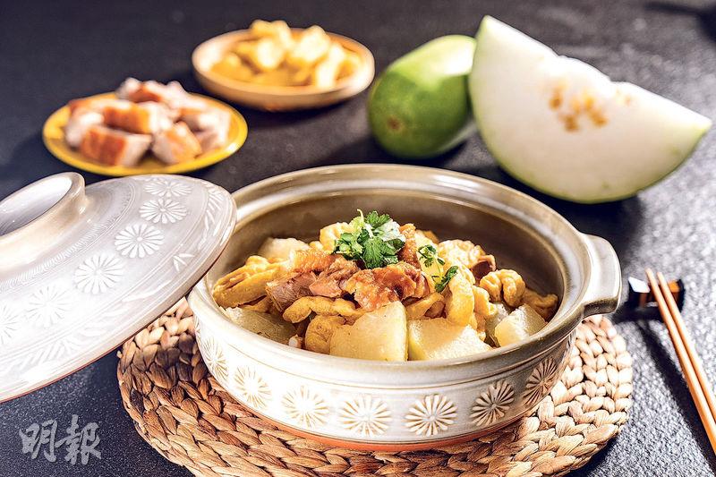 【明報專訊】炎炎夏日,冬瓜當造,瓜肉特別飽滿、清甜,自然成為餐桌上常見的主角,其中冬瓜豆卜燜火腩是我家一道熱門冬瓜菜式,也是我從小吃到大的家常菜。這道菜材料簡單,只有冬瓜、燒腩骨和豆卜。烹調時,冬瓜釋放清甜味,火腩帶來鹹香,兩種味道完全滲進湯汁,再加些蠔油提升鮮味,舀一匙羹湯汁試味,又香又鮮。啊!別遺忘還有豆卜,它已靜悄悄地吸飽可口湯汁,可說是這道菜的精華所在,所以我們每次都會準備大量豆卜,用充滿湯汁的豆卜來佐飯,特別滋味!