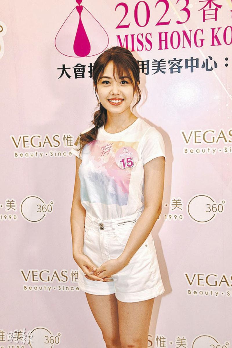 【明報專訊】《2023香港小姐競選》16名候選佳麗昨日出席美容中心宣傳活動,⑯郭珮文獲頒「完美體態大獎」,她開心表示可能行路挺得比較直,所以獲獎,但自覺體態未算完美,只是憑自信搭夠,「最想瘦多5公斤(11磅),已開始盡量食少啲,但可能達唔到目標」。⑮莊子璇希望改善寒背,目標與郭珮文一樣減5公斤,但同樣沒信心做到。