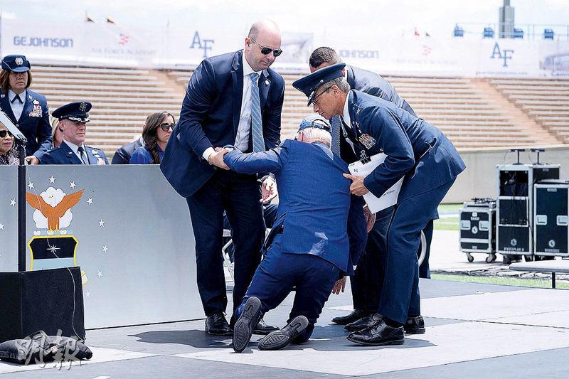 「沙包」是指拜登6月出席美國空軍學院畢業典禮時,當眾被固定提詞器的沙包絆倒。拜登除了偶爾跌倒,也不時口誤,最近兩度把烏克蘭戰爭誤稱為「伊拉克戰爭」。