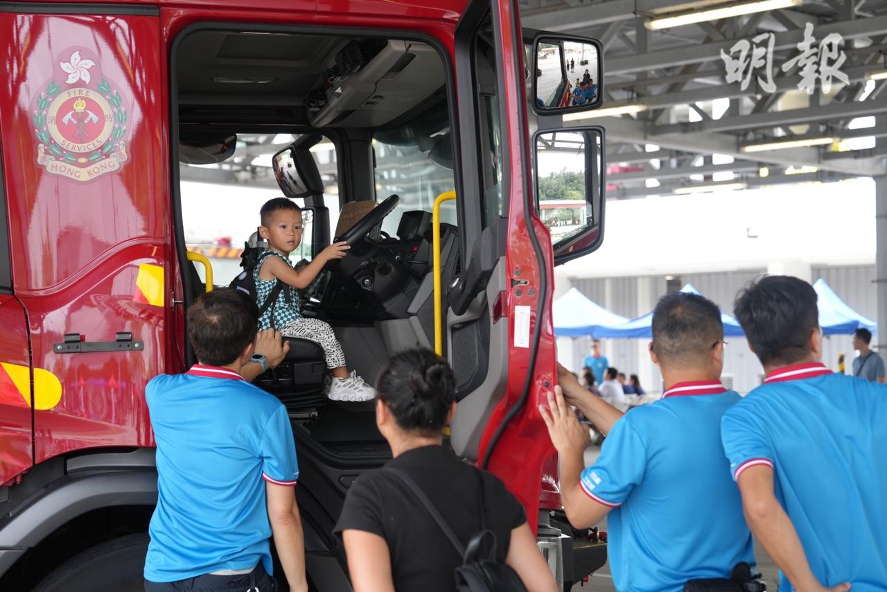 現場亦有不少「打卡位」,例如市民可坐上急救醫療電單車、消防車等拍照留念;小朋友亦可體驗當「一日消防員」,並與當值消防人員合照。楊太指,稍後才會到消防車拍照,因經過時看到「打曬蛇餅」。