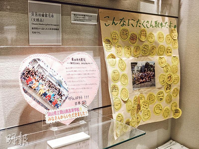 【明報專訊】漫長重建路上,福島縣充滿來自全國的「應援」。「東日本大地震與核能災害傳承館」展出來自岡山縣立岡山南高等學校的心意卡,送卡之時,為事故發生後7個月。卡上描述校內學生於文化祭上演話劇,講述福島縣由地震到重建的過程,希望福島盡快復興。文化祭後不少人問道:「現在有什麼可以做?」寫卡者引述其母看法:「為復興打從心底裏祈禱,期望每個人早日重拾笑容。」