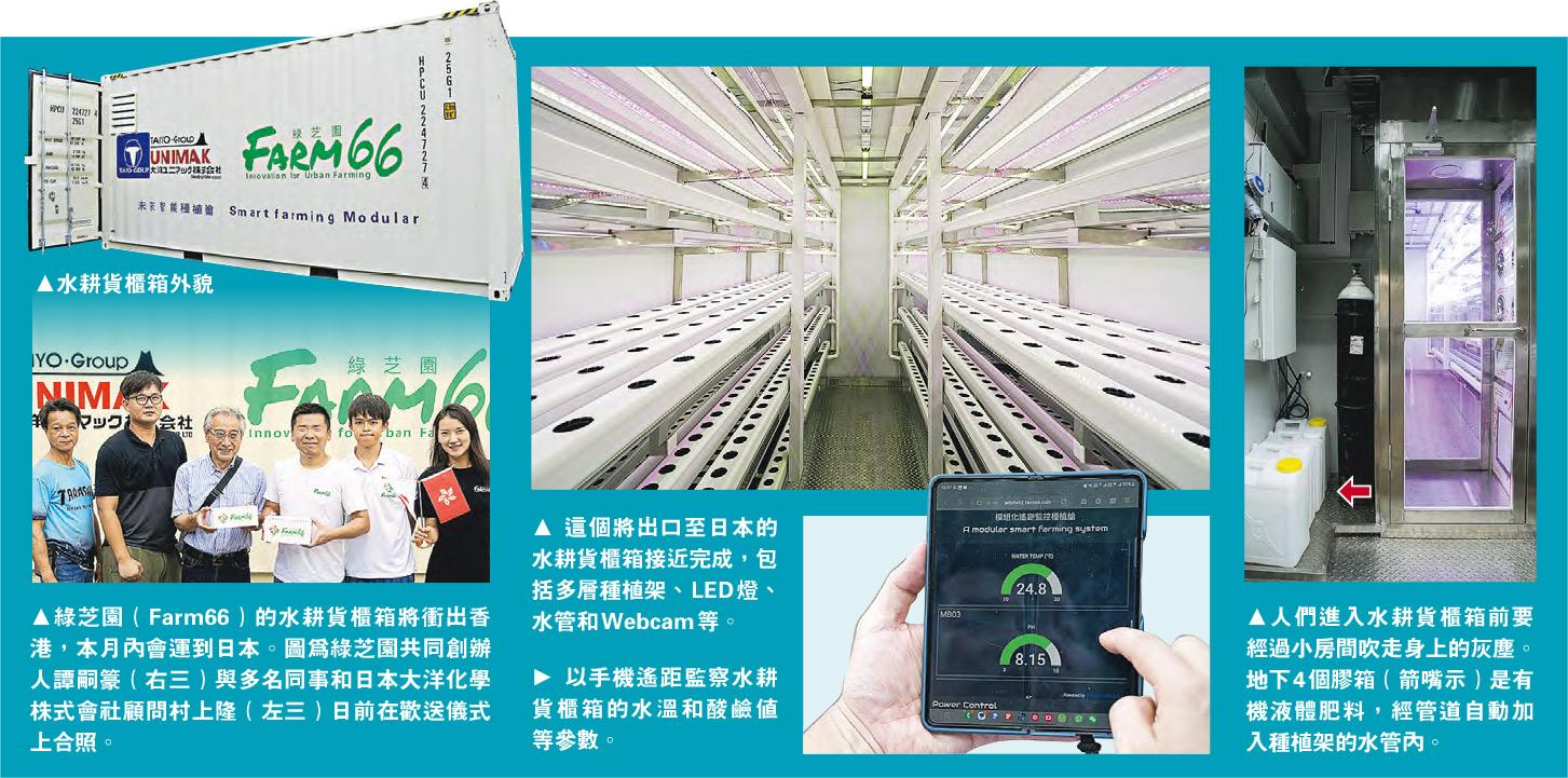 【明報專訊】新冠疫情對於各種供應鏈造成巨大衝擊,令很多國家關注倚賴進口的風險,希望能建立部分自給自足的供應鏈。有香港公司研發的水耕貨櫃箱連續接獲多個國家的客戶訂購,預料本月運出第一個到日本後,稍後會開始付運給泰國和迪拜。