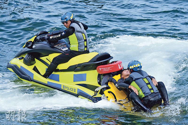水警昨在西貢示範使用水上電單車救援,當接到求助後,便會以無人機偵測及定位墮海者,水上電單車及支援船駛到傷者附近後,由一名水警控制水上電單車,另一水警則負責將傷者移動至救生浮板,再轉移到支援船上急救。不過,由於水上電單車未配備航行燈,因此只適用於日間搜救。