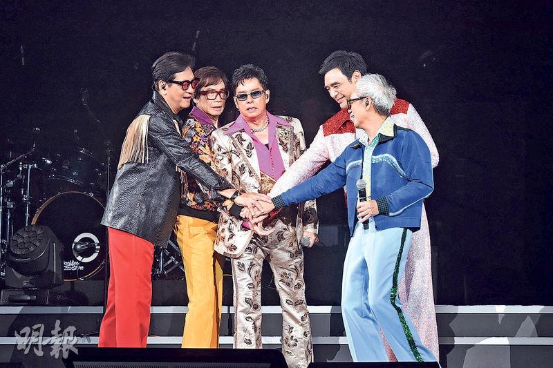 【明報專訊】溫拿7場紅館farewell演唱會前晚圓滿結束,溫拿五虎譚詠麟(阿倫)、鍾鎮濤(阿B)、陳友、彭健新(健仔)及葉智強(阿強)大感不捨,前晚除了是演唱會尾場,亦是溫拿歷年來第73場紅館騷,創紅館開最多場數的組合,他們獻唱《由始至今》時,阿倫與阿B終忍不住眼泛淚光,粉絲大嗌唔好喊,場面溫馨感人。