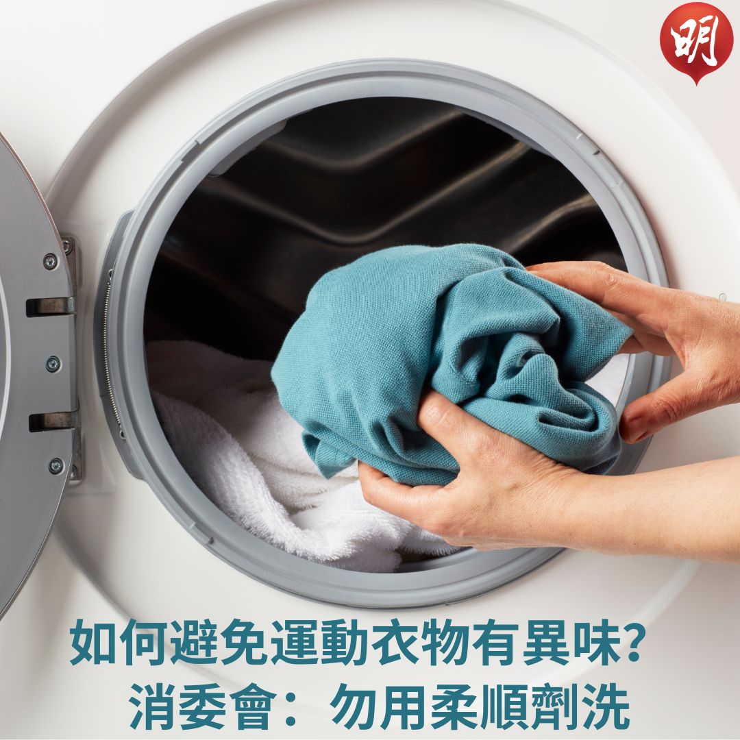 運動後,衣物被汗水沾濕後有異味,甚至在清洗後異味仍揮之不去。消委會提醒,運動衣物每次穿着後應盡快清洗及晾乾,清洗時切勿使用衣服柔順劑,因會將污垢鎖在人造纖維中,令氣味留在衣物內。柔順劑亦有可能破壞物料的彈性及透氣排汗性能。