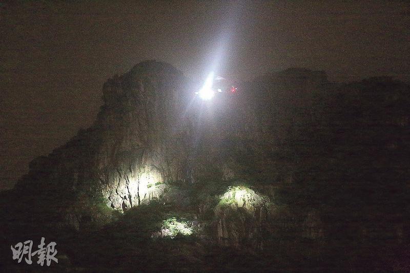 【明報專訊】一名男子前晚獨自登上獅子山頂,被另一行山者發現懷疑失足墮崖。消防及政府飛行服務隊搜索約兩小時,在山頂對下50米山坡發現事主,已明顯死亡。死者身上無身分證明文件,初步判斷年約30至40歲。