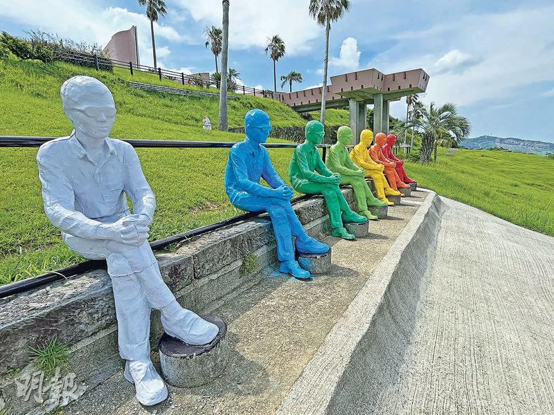 Sun Messe日南位於海岸山坡上,原本是一個牧場,1987年關閉後才變成今日的遊樂休憩場所,開園26年共迎來逾450萬人次的旅客。除了官方認可的複製摩艾像,日本藝術家今井祝雄創作的 《ヴォワイアン》(解作「觀賞者」之意),也是遊客打卡目標。7個顏色鮮艷的「觀賞者」,坐在山坡上看着7尊摩艾像,遊客坐在彩色雕像中間,頓時成為當中一分子。若想用更特別的方式看巨石像,可以坐上山坡的鞦韆,一搖一擺盪在微風之下看風景。