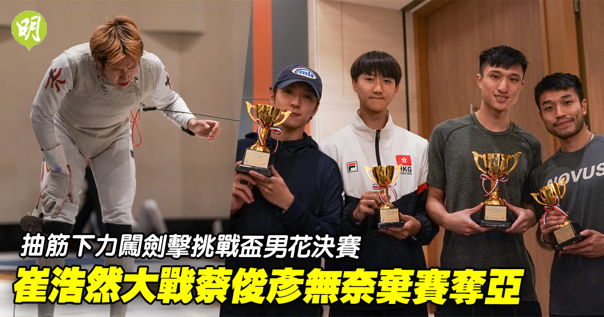 挑戰盃劍擊錦標賽今日(20日)假香港科學園上演次日賽事,亞運代表崔浩然和蔡俊彥會師男子花劍決賽,後者因對手因傷棄戰,順利封王。崔浩然賽後坦承抽筋並落入下風,但一直告訴自己要「頂住」,總算捱入決賽,心態也變得堅韌。