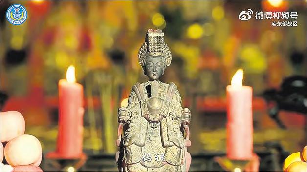【明報專訊】解放軍圍台演習,兩岸軍方同時展開文宣戰。東部戰區前日(20日)發布系列宣傳短片第三部《守護Ⅲ》,以神明「媽祖」守護台灣,反諷台灣總統蔡英文、副總統賴清德是「製造人禍的陰謀家、野心家」。台軍昨日亦發布影片,取景佇立於馬祖的「媽祖巨神像」,以反擊解放軍影片中「迷你媽祖」,強調台軍維護區域和平穩定決心。
