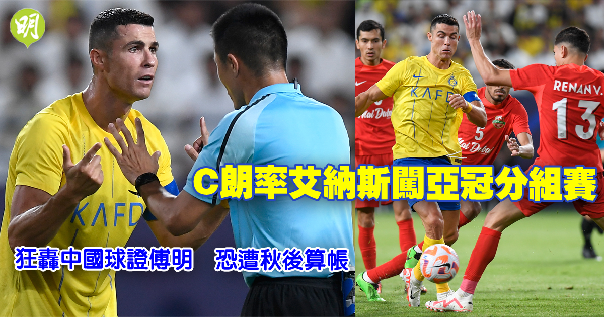 由基斯坦奴朗拿度(C朗)領軍的沙特聯球隊艾納斯,今晨(23日)在亞冠盃附加賽以4:2驚險反勝阿聯酋球隊沙比阿爾阿里,取得分組賽資格;由於今戰執法球證、來自中國的傅明尺度備受爭議,令全場「食白果」的C朗在比賽期間不斷抗議,甚至粗言相向,場面火爆,恐被秋後算帳。