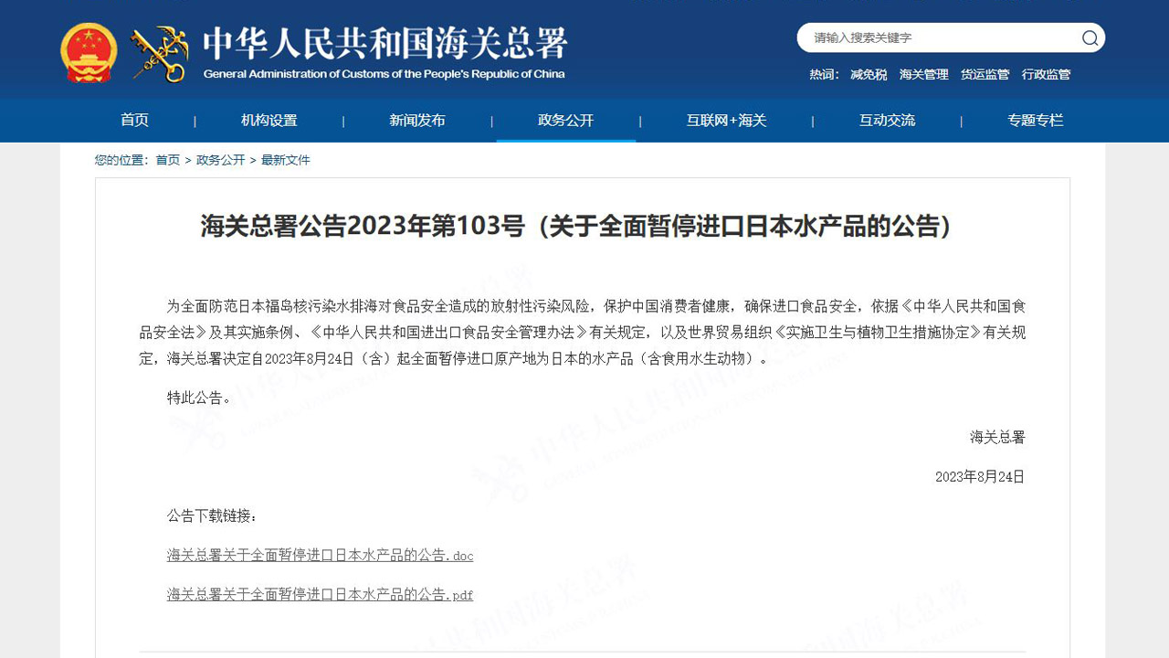 中國海關總署宣布,即日起全面暫停進口原產地為日本的水產品。民建聯表示全力支持國家海關總署做法,促請港府按國家的做法及實際情况調整禁令,讓本港市民的健康及食品安全得到全面保障,「以免讓香港成為國家食安的風險點」。