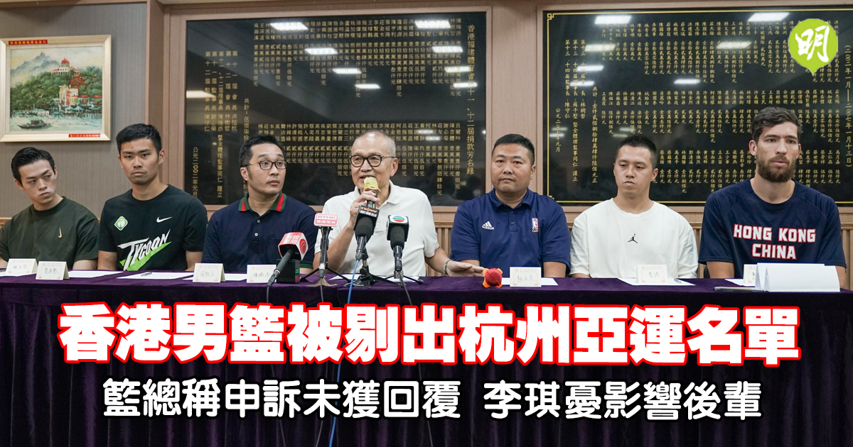 內地傳媒上周爆出杭州亞運的分組名單,香港男籃卻不見影蹤,疑被剔出賽事。香港籃球總會今午(24日)就此事於北角召開記者會,主席陳瑞添直言得悉後感震驚,並已馬上通知港協暨奧委會,於周一(21日)透過港協去信亞奧理事會(OCA)申訴,惟對方至今仍未回覆。港籃主力李琪擔心此事影響後輩,陳兆榮亦盼清楚來龍去脈。