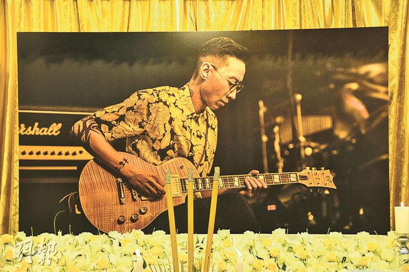 靈堂佈置簡潔,遺照用大飛生前彈結他的照片,靈堂中央擺放大飛遺孀唐美琪寫上「永遠愛你」的心形花牌,旁邊擺放不少紙紮祭品,包括各種樂器,由曾為黃家駒喪禮製作紙紮結他的歐陽秉志師傅不收酬製作,熒幕播放大飛生前片段,亦播放由大飛作曲、林憶蓮主唱的《至少還有你》。張學友、黃貫中、容祖兒 、謝霆鋒、陳慧琳、吳彥祖、陳冠希、梁詠琪、鄭中基、鄭伊健、 許志安、張敬軒、太極樂隊及RubberBand等送上花圈致哀。