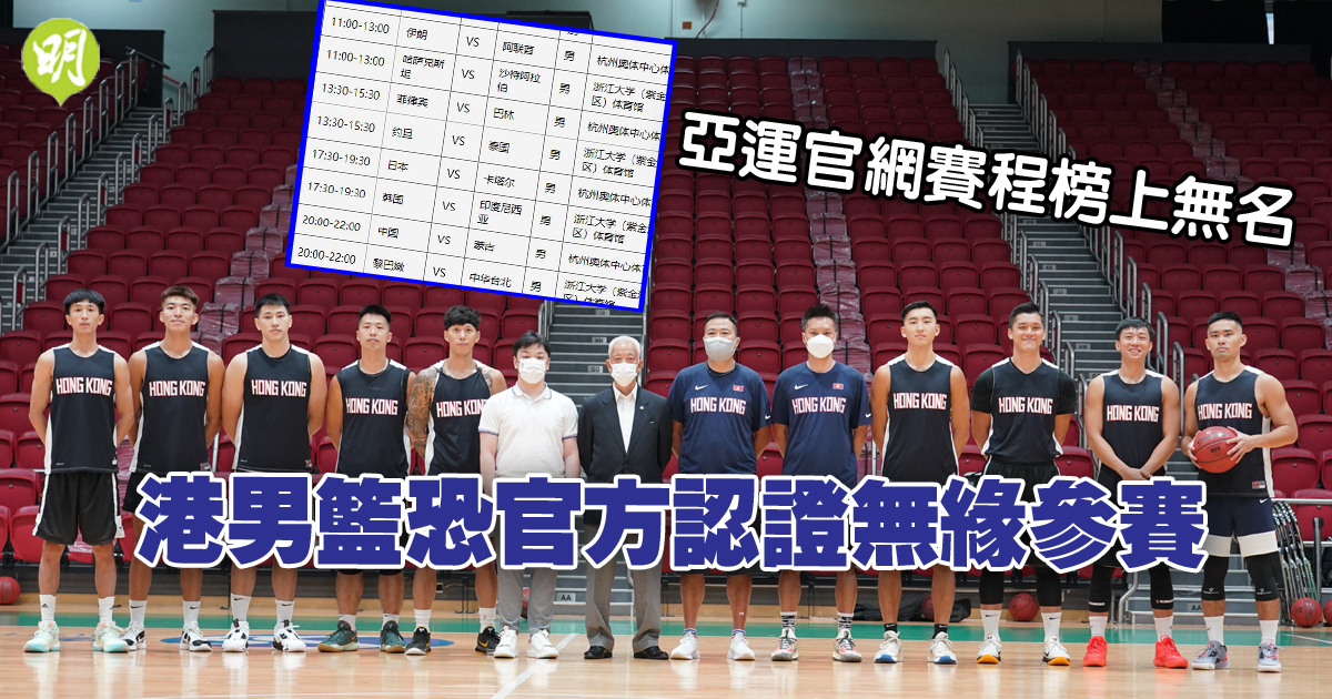 男子籃球港隊在日前流出的杭州亞運分組名單上不見影蹤,疑被剔出賽事。杭州亞運組委會今(25日)在官網公布賽程表,當中在男子分組賽並未出現港隊,並刪除有關賽制的簡介,意味已獲亞運官方證實無緣參賽。