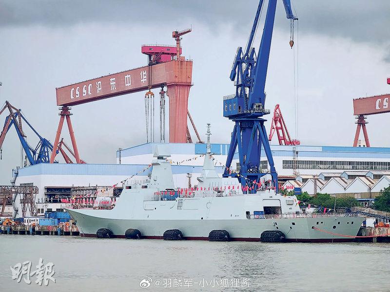 【明報專訊】解放軍海軍054B型護衛艦首艦,前天晚間在上海滬東中華造船廠順利下水。這預示該新型艦艇的建造進入新階段。未來料將逐步取代現役054A型護衛艦,成為主力水面作戰部隊,並將成為航空母艦編隊成員。
