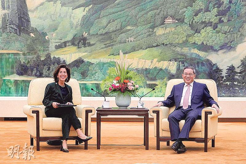 【明報專訊】國務院總理李強昨在北京會見訪華的美國商務部長雷蒙多(Gina Raimondo)時稱,中方願與美方加強經貿領域對話合作,推動兩國經貿關係健康發展,希望美方與中方相向而行。新華社報道,中美商務部長前日經會晤達成共識,宣布在兩國商務部之間建立新溝通渠道,並成立一個副部級工作組,以尋求解決具體商業問題的辦法。