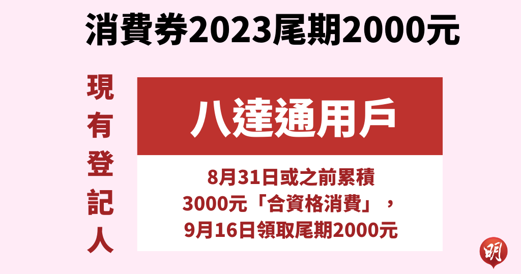 消費券|八通達9月16日再派尾期2000元消費券 未領者8月31日前須夠3000元合資格消費 (08:56)