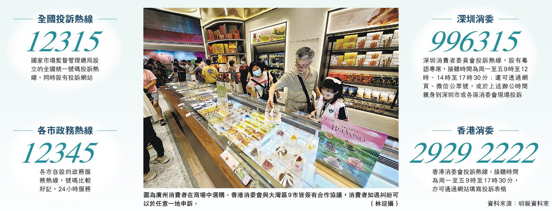 除了「12315」、「12345」這兩條熱線,像廣州、深圳都有跟香港一樣的消費者委員會機構,可以致電辦公室電話申訴;深圳市消委更在2019年9月開始啟用「966315」消費投訴諮詢熱線。而針對大批港人北上消費,今年7月起「966315」設立「粵語專席」,方便維護港客權益。另外,廣州將「12315」和「12345」整合,統一接受和處理申訴,而且熱線也可選擇粵語。