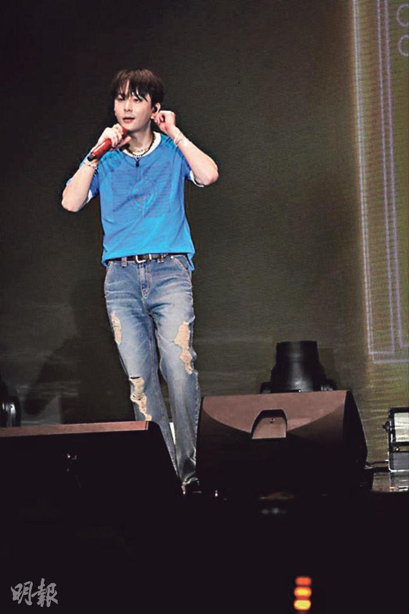 【明報專訊】韓國男團Highlight成員龍俊亨2019年捲入鄭俊英散播性愛影片事件而離隊,改以獨立歌手身分發展,前晚在旺角麥花臣場館舉行演唱會,入座率約九成。龍俊亨連唱《Lonely》、《Go Away》及《Koong》揭開序幕,並以普通話跟港迷打招呼,「大家好,我是龍俊亨,見到你們很開心」。相隔5年再度來港,他表示掛念歌迷,又讚粉絲歡呼聲強勁,足以壓倒他的氣勢,所以要脫下外套,把力量散發出來。