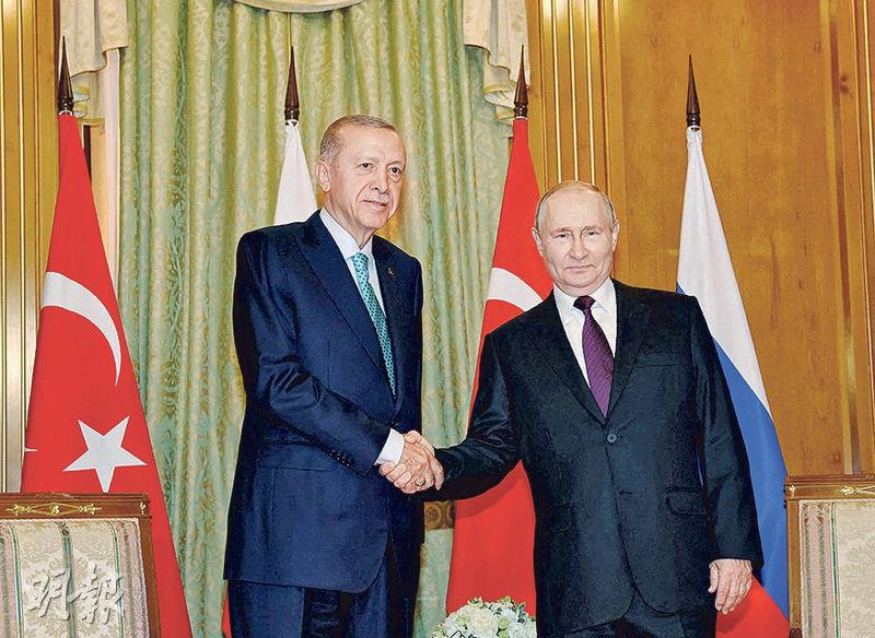 【明報專訊】土耳其總統埃爾多安周一(4日)訪俄,在黑海城市索契會見俄羅斯總統普京,焦點落在游說對方重返黑海穀物倡議。事前預告持開放態度的普京會後重申立場,即只有相關協商內容獲履行才會重返倡議,他指已接近跟6個非洲國家達成免費穀物出口協議,可在數周內開始付運。埃爾多安稱仍相信可彌平立場差距,呼籲烏方軟化立場以尋求恢復倡議,但強調倡議的替代選項無法提供持久解決方案。