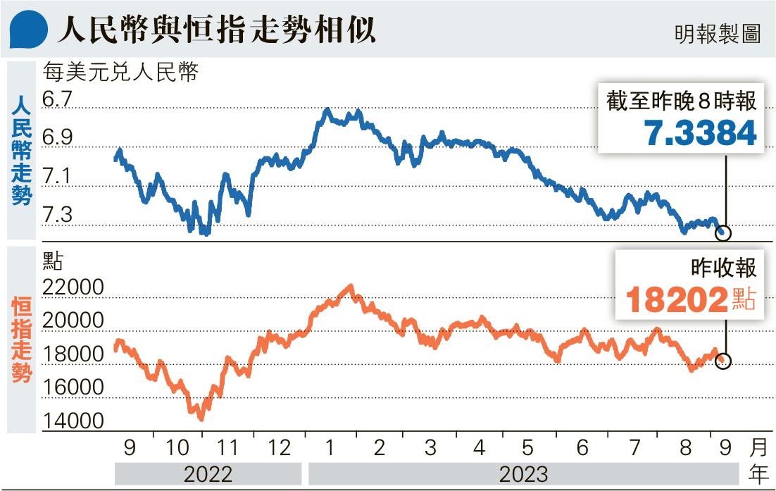 【明報專訊】美國通脹壓力回升令美元持續轉強,人民幣兌美元在岸價收市跌穿7.32,見2007年12月26日以來新低,即使中國出口數據略見改善,仍無助扭轉中港股市弱勢。恒指昨跌247點,收報18,202點,3天共挫642點,成交進一步縮至868億元,為近兩周新低,內地股市三大指數亦跌逾1%。證券業人士指出,後市仍看美息走勢,不排除恒指跌穿18,000點,殺落17,900點的牛證重貨區。
