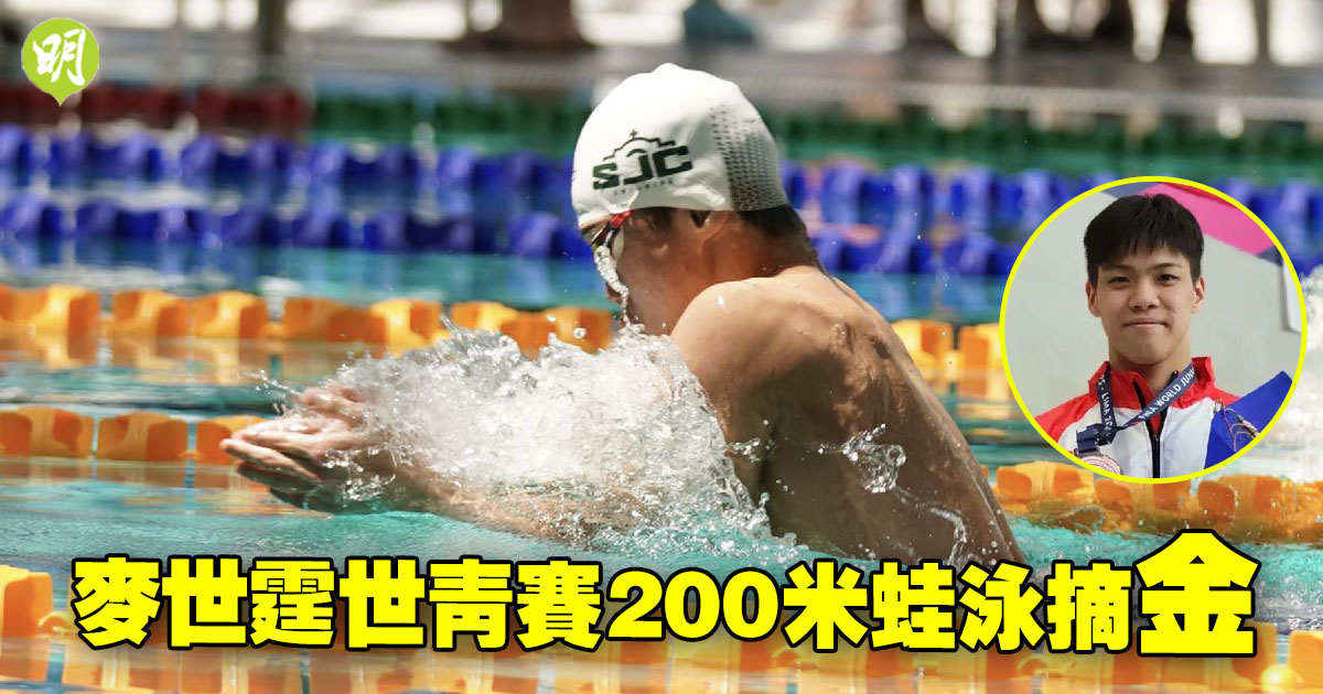 港隊在以色列舉行得世界青年游泳錦標賽傳來捷報,小「蛙王」麥世霆今(7日)在男子200米蛙泳以2分11.84秒封王,連續兩年上頒獎台之餘,更成為首位在世青奪金的男泳將。