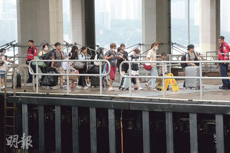 分3批乘船撤離 搭浮台助上落