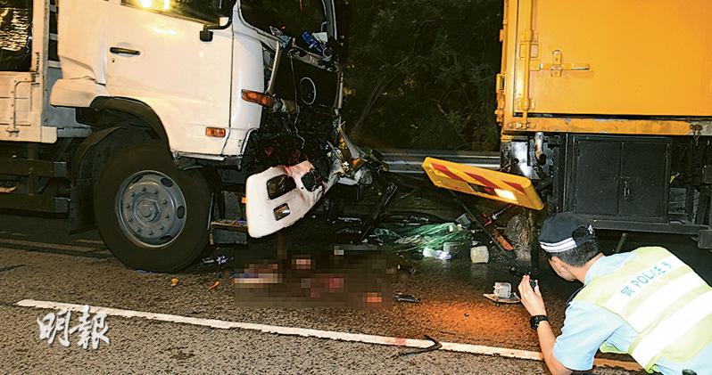 昨凌晨4時10分,涉事中型貨車沿機場路往駿運路交匯處方向行駛,駛至觀景路8號對開時,懷疑收掣不及撞向停泊上址的一輛洗街車,在地面工作的姓張清潔工人(55歲)走避不及,被夾在兩車之間,當場死亡,另一工人則及時閃避,沒有受傷。姓鄒貨車司機(44歲)事後胸口痛及四肢擦傷,送往北大嶼山醫院治理。他涉危險駕駛引致他人死亡被捕,案件由新界南總區交通部特別調查隊跟進調查,目擊者可致電36611348與調查人員聯絡。