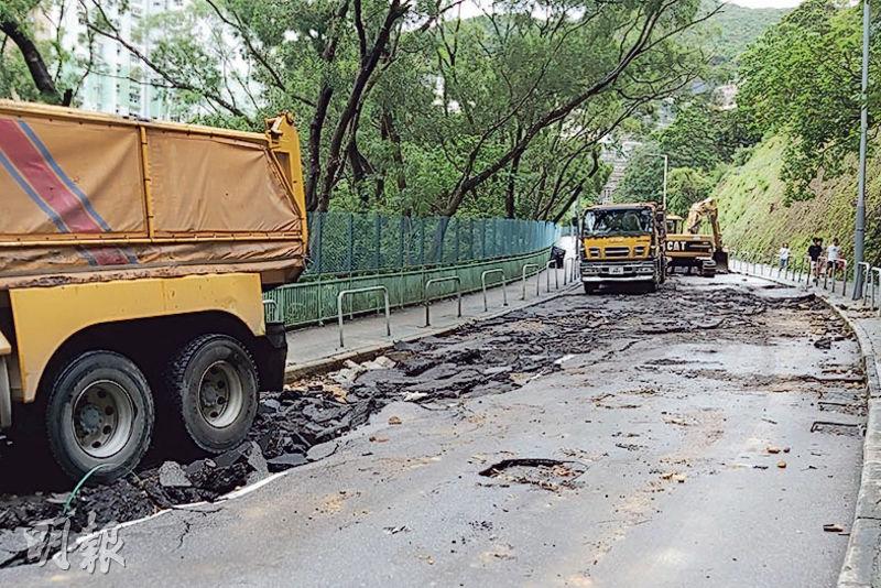 港島方面,柴灣連城道通往歌連臣角道的來回行車路嚴重損毁,部分路面高低起伏約半米,警方臨時封閉該路段。至昨早上7時許,一輛的士倒車期間被困坑洞,司機自行離開,並無受傷,有工人其後到場處理。