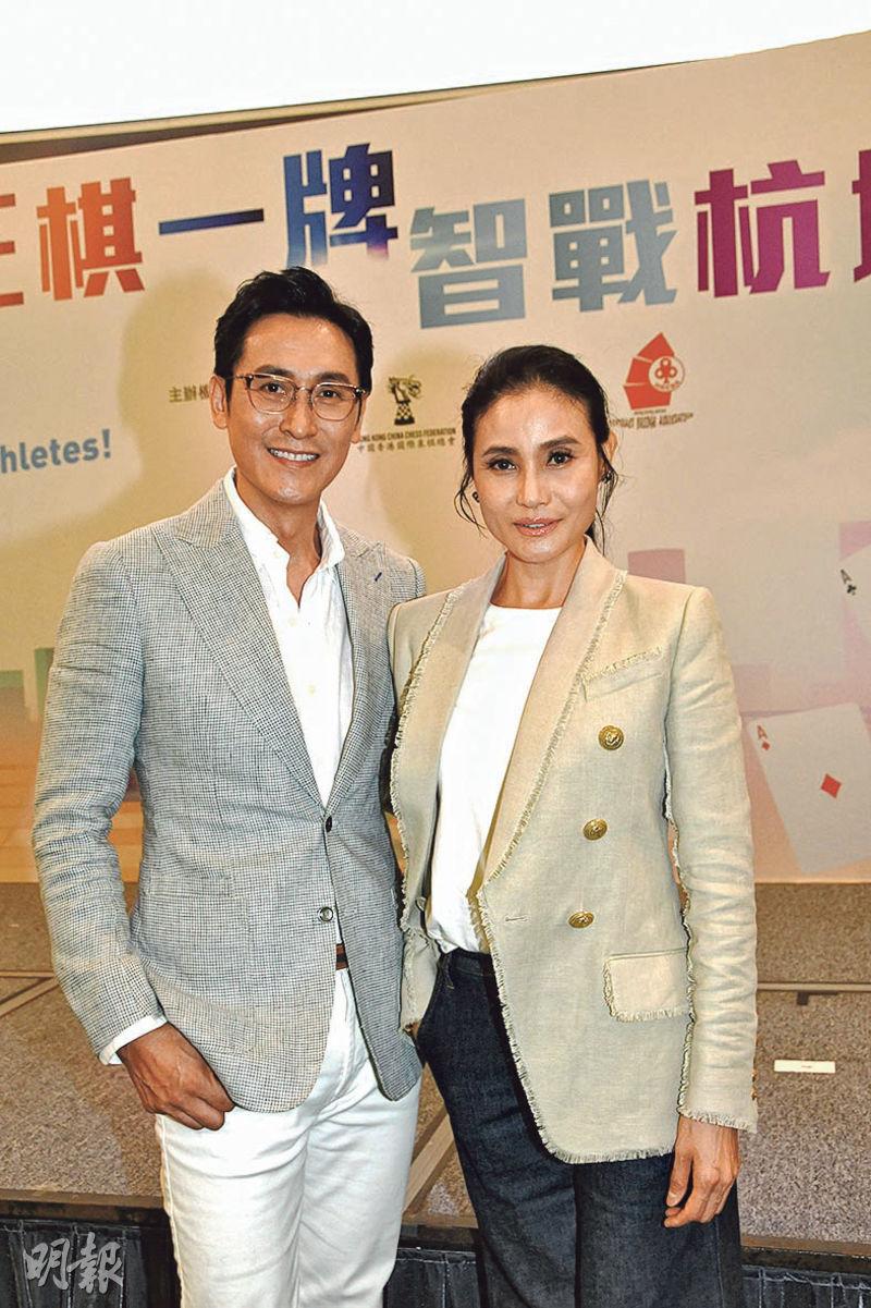 【明報專訊】馬德鐘與太太張筱蘭昨日到荃灣出席活動,為出戰亞運的「三棋一牌」港隊打氣,馬德鐘表示有玩國際象棋及中國象棋,平時會和兒子馬在驤切磋,認為是很好的親子活動。問兒子可有計劃結婚?他說:「冇咁快,仲細啫。拍吓拖先啦,這世代很遲先結婚生仔,不似我舊時,都要有經濟能力養家,我也不急抱孫。」